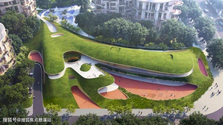 松苑将建筑以大地景观的形式呈现,让建筑、自然与人无界相生,每栋楼宇如有机生命体般错落生长,独树一帜的灵芝建筑给人塑造一种极具艺术感、未来感的生活空间,打造当代自然艺术住区。