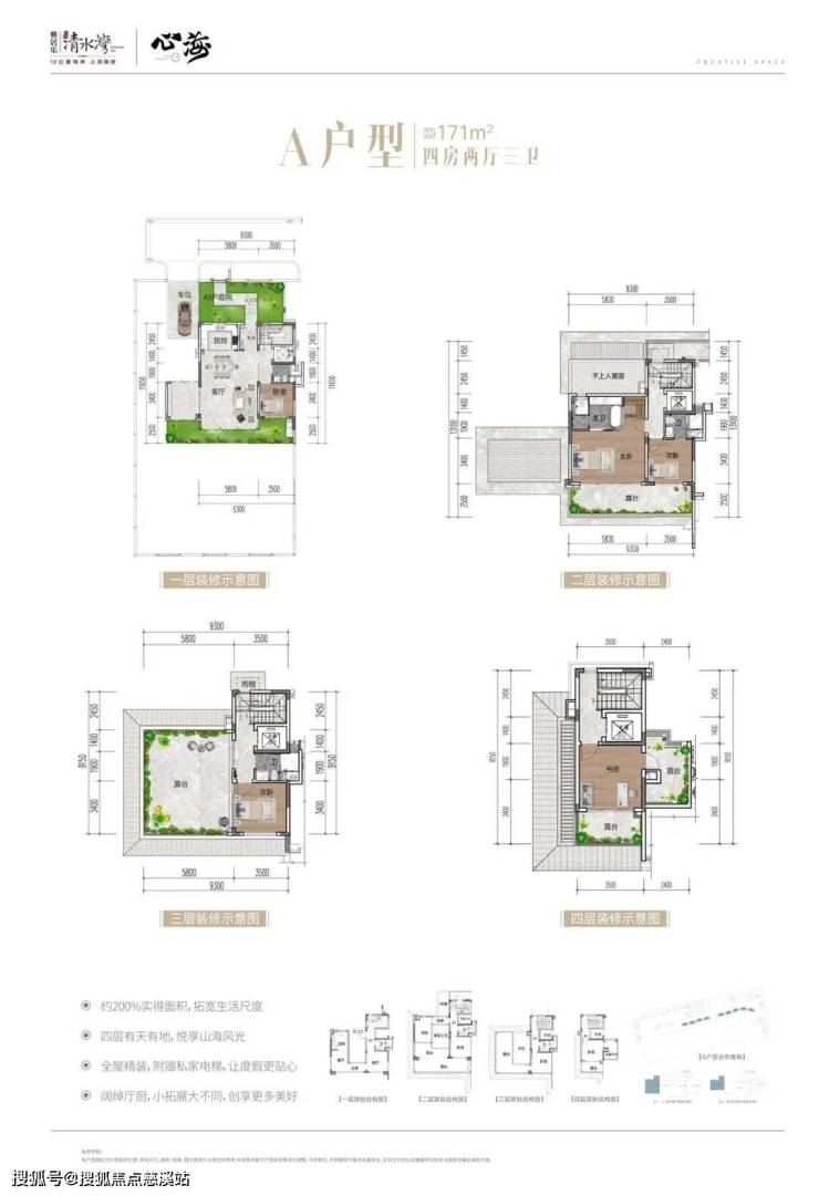 叠拼产品A户型:建筑面积约171㎡,四房两厅三卫