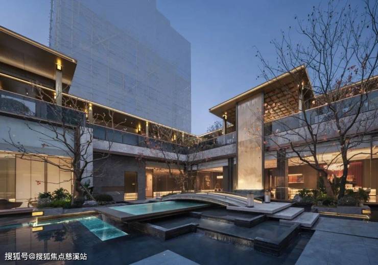 项目在集约用地中采用三进式的山水序列:一进融合城市界面,二进营造林泉秘境,三进围合静雅庭院。设计将水景置入场地,构筑碧波映檐、叠石成趣的立体园林体系,使仰观可得山月之趣,俯察尽揽流云之姿。这种既承袭东方营造智慧,又契合当代生活美学的空间哲学,实现了大都会中“不出城郭而获林泉之怡"的理想栖居范式。