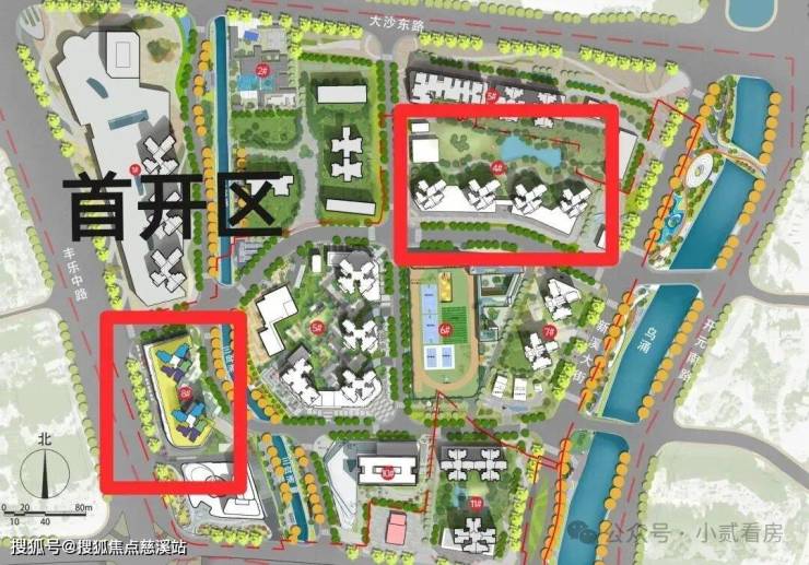 首开为2号地块,只有两栋商品房和一栋商业楼,1栋为超高层,总高47层,三梯五户,2栋为高层,总高31层,两梯五户,首开的2栋和另外4栋不连片,中间隔了回迁。