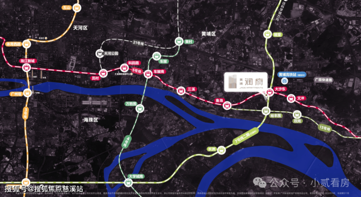 黄埔润府坐拥广州超级换乘站(地铁5/7号线换乘站大沙东站)约300-400米,走路相对也比较近,广州地铁5号线和7号线,承载广州城市发展战略以及粤港澳大湾区城市之间协同发展的重要意义。
