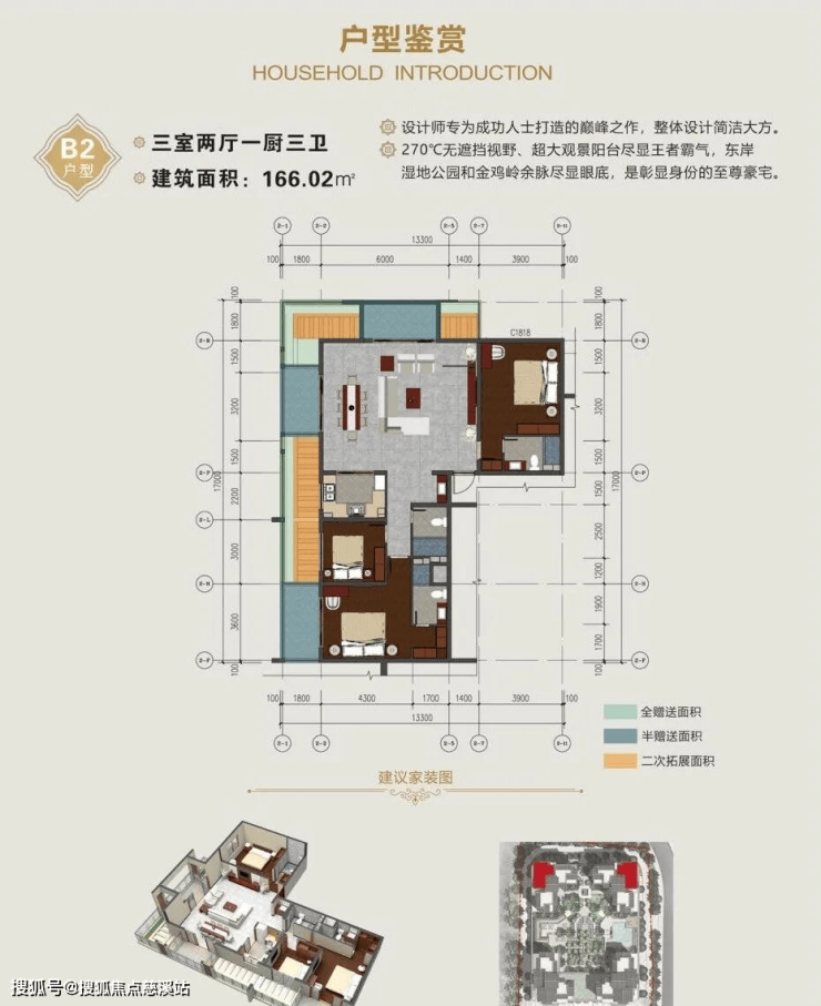 2.主次卧室、客厅特设观景阳台,让视野随着地面延伸,四季变迁尽收眼底。