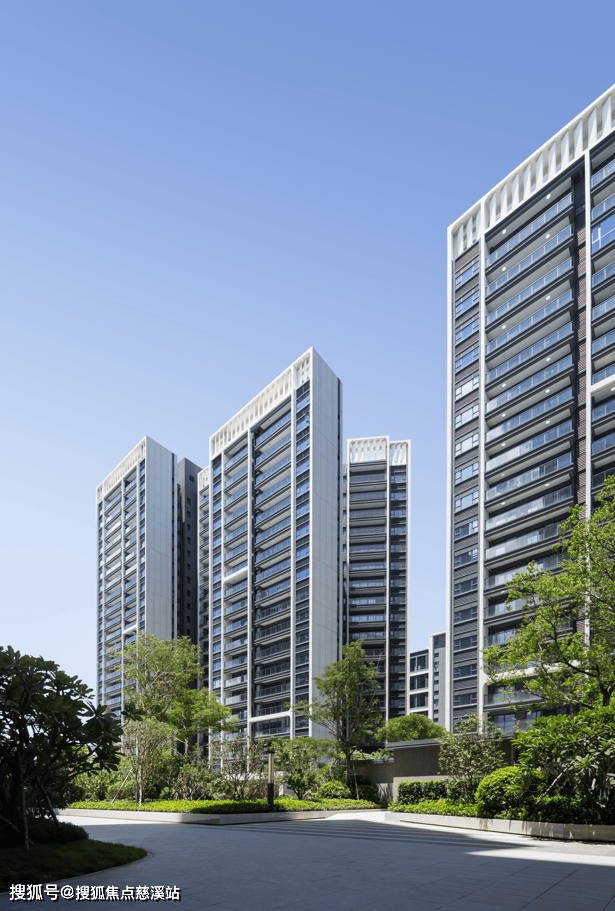 住宅立面设计通过简洁大气的框体语言、大虚大实的形体关系、优雅弧角的母题符号打造专属本案的定制立面形象,灰为主,白为辅、极具构成感的色系划分,形成了多层次,虚实鲜明的公建化住宅立面形象。