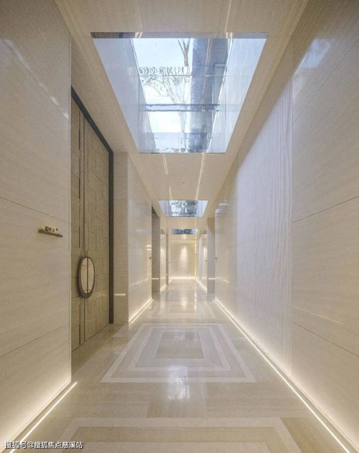 看一个楼盘的营造水准,你只需要看天花板的美学含量,就能看出他们真实的功力。地下会所里天光走廊的天花板、墙面和地板,是同一种材料的贯通运用,更是同一种色调的协奏曲。