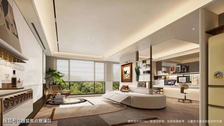近500㎡水韵空间:酒店式浮岛水苑,绿植树池呈水韵浮岛之态点缀其间,雅趣归家景观带