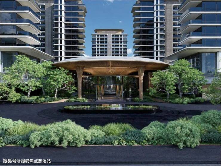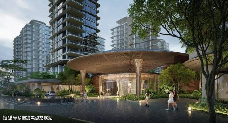 主入口处,项目打破传统 “一墙了之”的做法, 用约 15米退线林荫 分隔 , 自然过社区内,项目以领先理念打造涵 4大功能的主题式复合场景集盒,满足全家共享及圈层社交需求。