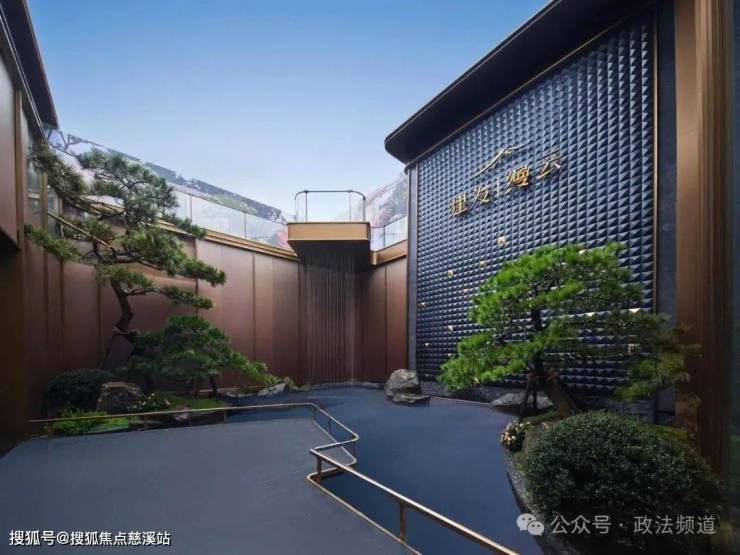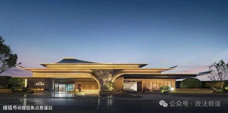 东方美学公建化立面,云卷飞檐造型、香槟高级配色金属材质,南面大窗墙比,客厅采用全景落地窗;大门秉承酒店式风格,建筑观感即是居者的身份标签感。