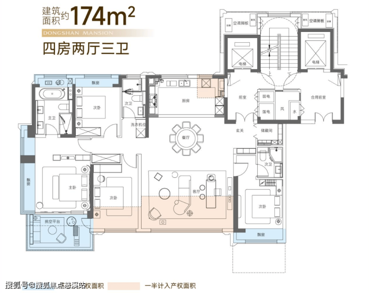 整个项目打造建面约120㎡-174㎡改善面积段,户型三房起步: