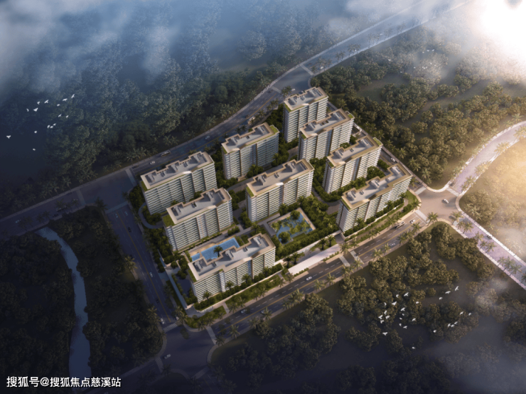 项目坐拥“山-城-河-园-海”五重盛景,形成独特的“藏风纳海”生态格局。