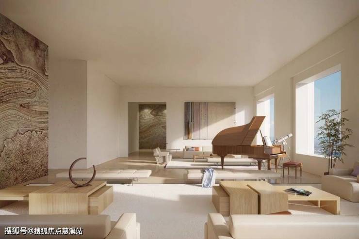 至高约16.8m四开间面宽朝阳,引阳光清风自由流动,空间明亮通透,匹配居者开阔的人生视野与格局。