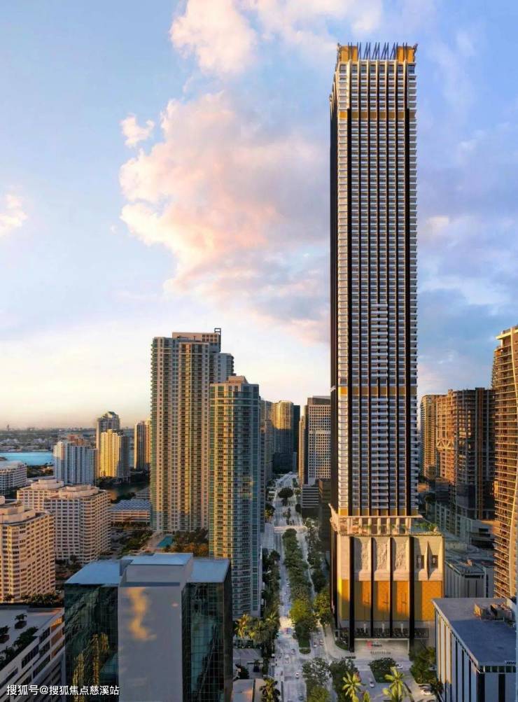 自杜嘉班纳迈阿密888 Brickell“金顶”获得灵感,以仰角曲线勾勒建筑轮廓,采用香槟金铝板构筑「金翎凤首」建筑顶制 ,并与同色系铝板线条勾绘建筑轮廓,于城市上空,篆刻金冠加冕的身份感,缔造超越时间的奢华天际。