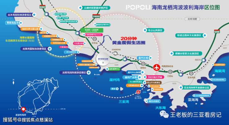 波波利海岸坐落于北纬18°以南黄金度假带上,位于龙栖湾国际旅游度假区核心地段,东接三亚市,南邻龙栖湾,西接龙腾湾,北望九所新区。湾区整体规划用地面积26平方公里,海岸线总长15.5公里,波波利海岸位于龙栖湾湾区核心地段,龙头位置,靠山面海,尊享2.5公里绵延沙滩。