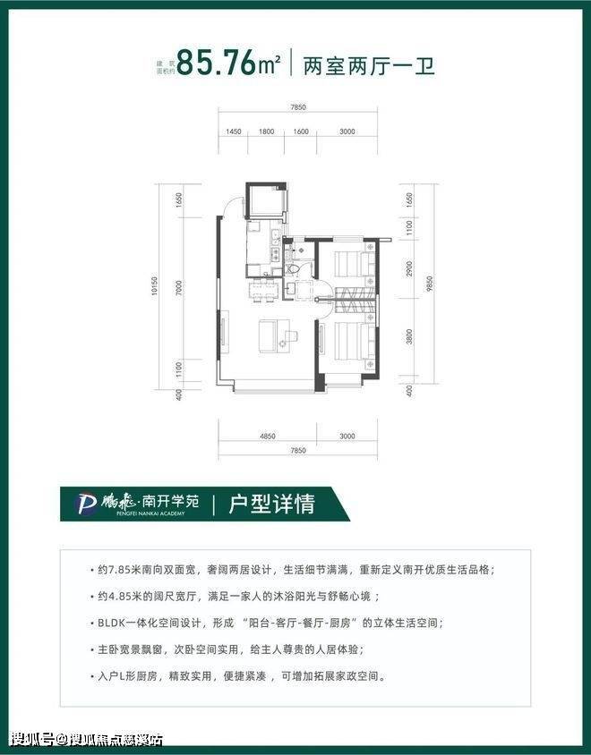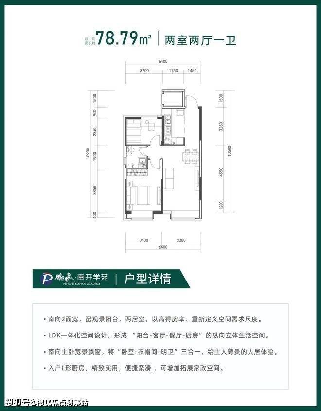 约78.79㎡两居室,格局方正,全明通透,居住空间利用率高。它将成为整个南开区新房的全新门槛。在大面积改善为主流的南开房地产市场极具总价优势。