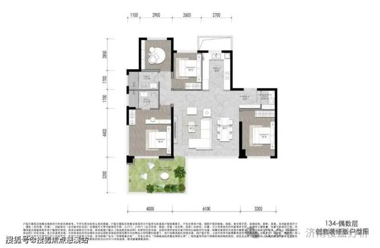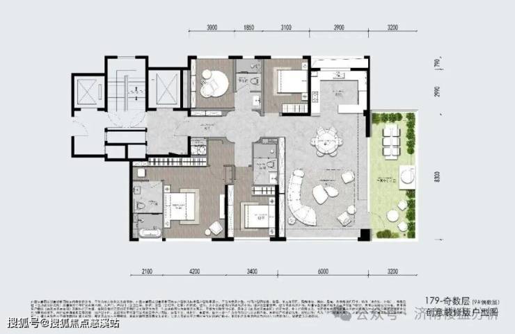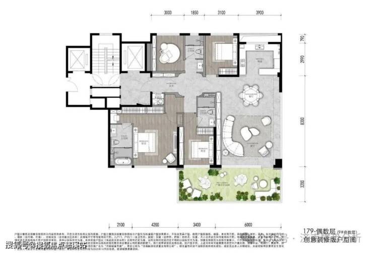 小高179平四室两厅三卫,加赠送可利用率约109%-112%