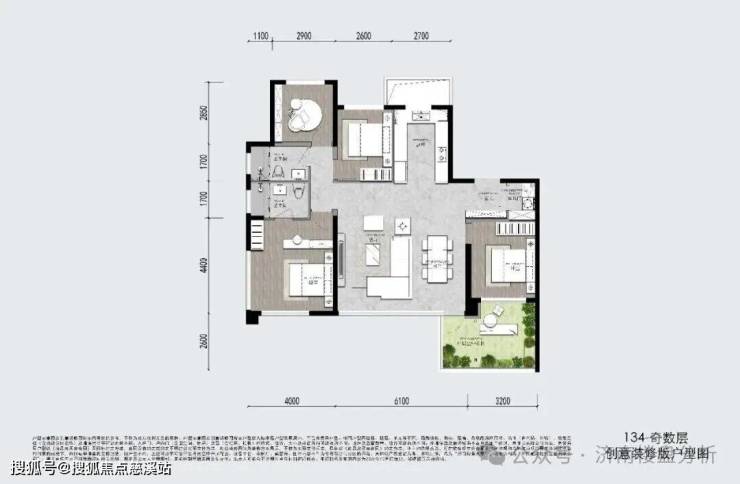 项目高层层高3米,露台挑高6米,小高层高3.1米,露台挑高6.2米