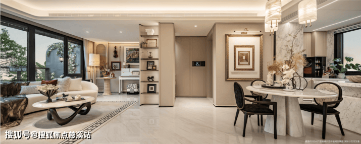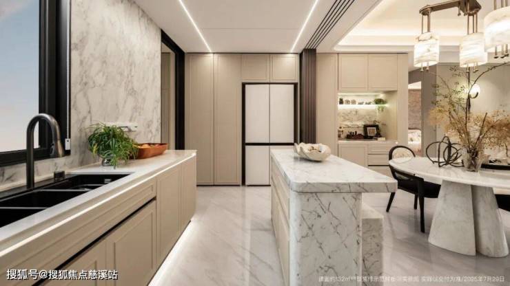 ● 客餐厅一体形成约39㎡社交巨厅,独立餐厅可以放得下6人大圆桌,开阔餐厨空间可设岛台;
