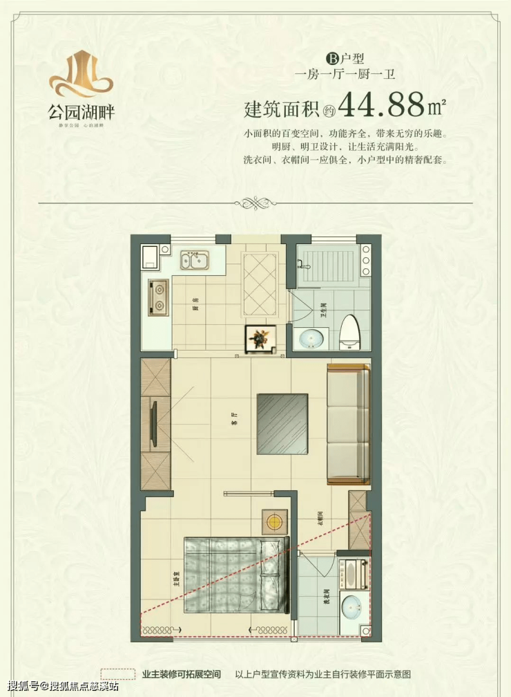 B户型 建筑面积44.88㎡一室一厅一厨一卫