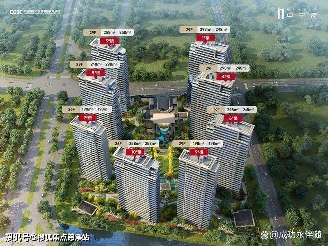 中宁府规划建设8栋26-29F高层住宅,整体采用U字型布局,共计433套房源,主力户型为198㎡、248㎡、258㎡、298㎡,以及少量400-550㎡顶部大平层,打造三恒两静一智能的科技住宅,社区的整体占地面积约4万㎡,包含1+N会所体系,即1座约3000㎡的中央会所+6座约900㎡的泛会所。项目预计很快加推6、9号楼,户型建面约198、248、298,其中建面约198户型首次亮相!