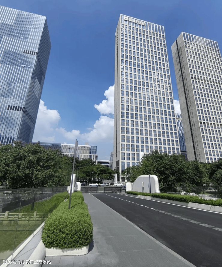 天奕建筑立面采用现代风格公建化设计。设计定制大面积玻璃幕墙,搭配铝板和米白色釉面陶板作为点缀。陶板由天然陶土高温烧制而成,为建筑外观增添温润质感。银灰色与浅香槟金的搭配,形成具有光影效果的立面。立面纵向线条挺拔,横向线条采用弧形设计。玻璃幕墙与弧形线条结合,塑造出流畅的建筑轮廓。