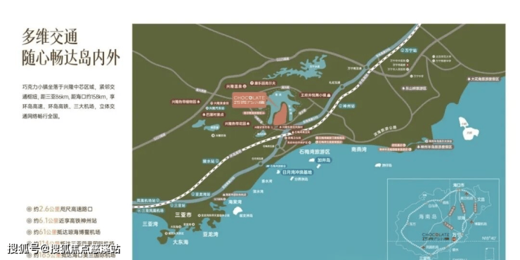 距三亚86KM,距海口约158KM,享环岛高速、环岛高铁、三大机场