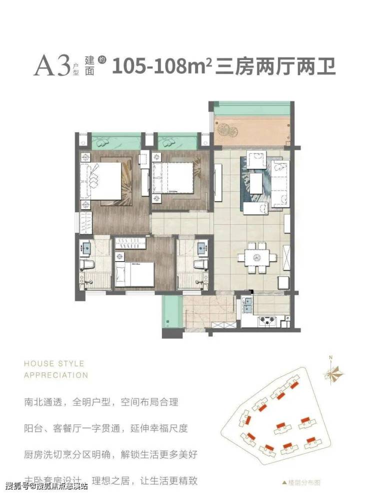 在售户型:103㎡,105㎡三房两厅两卫,128㎡,139㎡四房两厅两卫