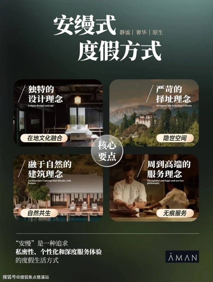 “安缦”是一种追求私密性、个性化和深度服务体验的度假生活方式,精髓在于其独特的设计理念、严苛的择址理念、融于自然的建筑理念、周到高端的服务理念和独特的精神内涵。在当下中国的财富圈层中,这种形态,正趋于主流的度假审美;