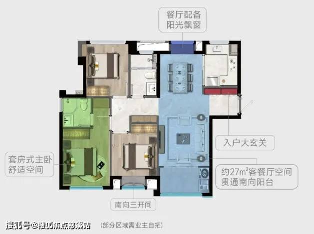 目前,项目主推10#楼99㎡四房两厅两卫,户型特点:1、户型方正,动静分离,南北通透,双卧室朝南,真正实现南北通透;2、餐厅配置飘窗,增加收纳空间;3、定制双重玄关柜,罕见过道柜设计,区别市面同面积段产品;4、约27㎡餐/客/阳台贯通;5、套房式主卧套房开间约3米,配备独卫和整体衣柜;6、IMAX全面屏落地窗(离地距离约25-30cm);7、U型厨房高配科技设备如:凉霸、油烟机、燃气灶、嵌入式洗碗机)。