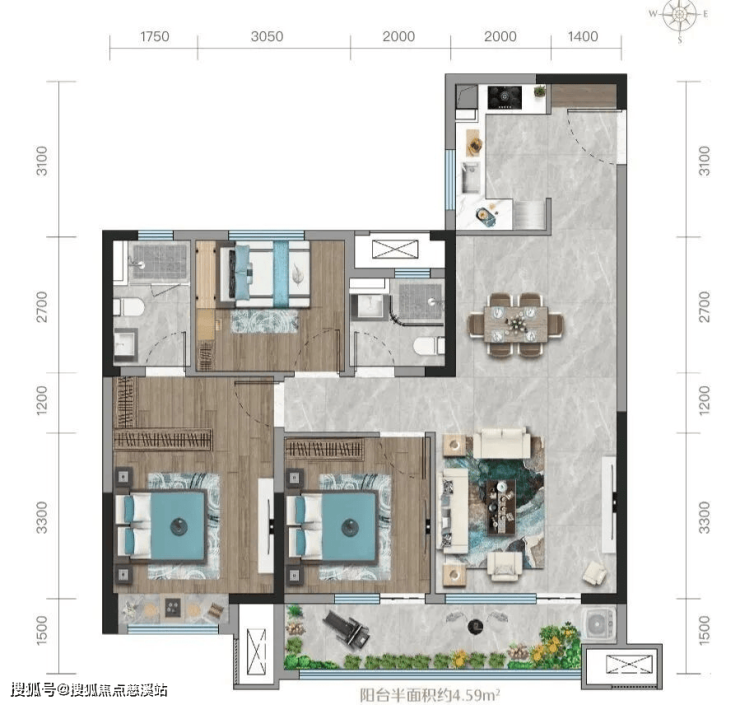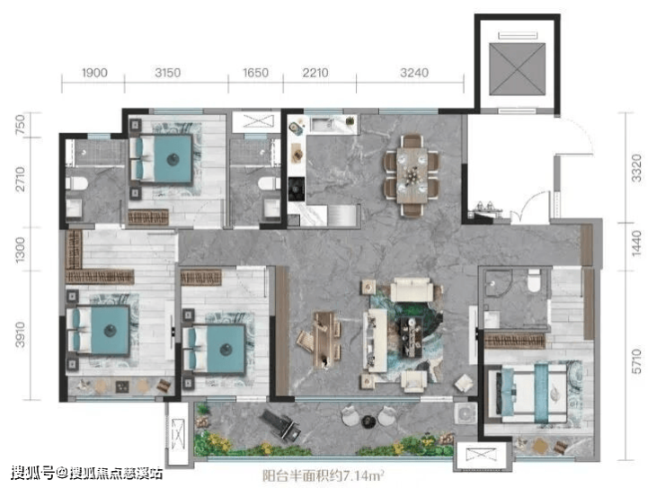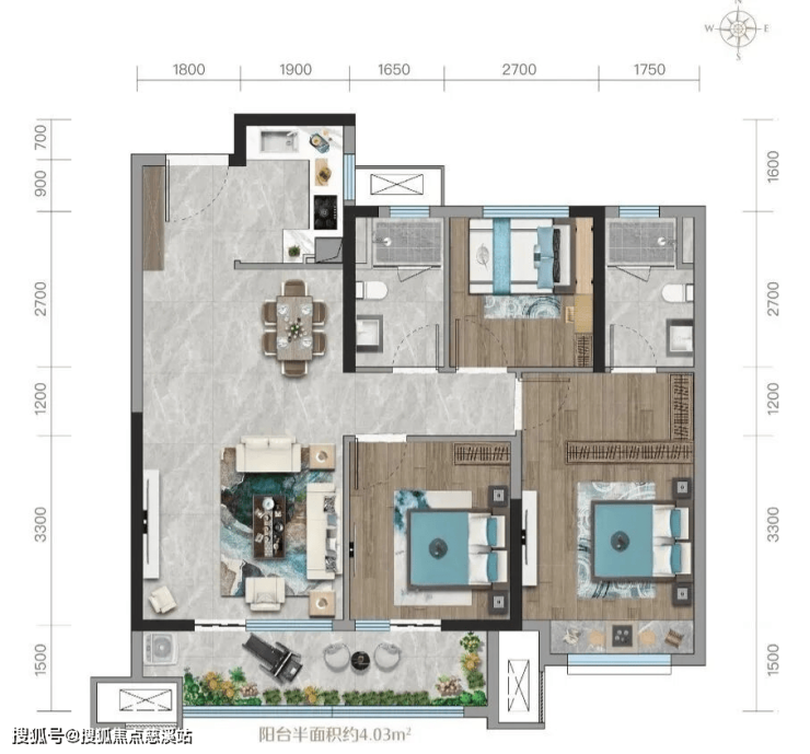 建面约169㎡ 四室两厅三卫,一梯一户,近9米宽双联阳台,双套房设计,致敬层峰人物!