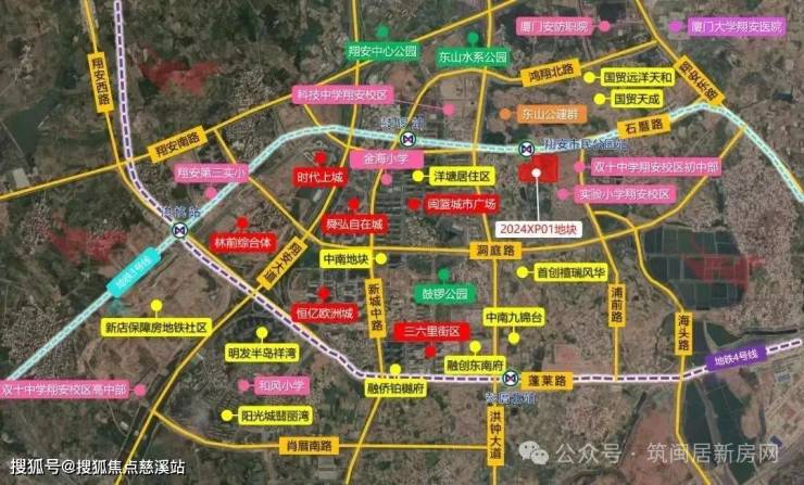 :位于翔安区 13-15 东山片区金泉路与浦滨西二路交叉口西南侧,属于翔安新城重点开发建设区域。翔安“人民之城”示范区,核心优势在于:地块紧邻厦门实验小学翔安校区(步行 230 米)、双十中学翔安校区初中部(步行 50 米),实现 “九年一贯制” 教育闭环,且生源纯净(需购房落户);直线 3km 范围内还有 24 个幼儿园、11 个小学和 6 个中学。双轨交通枢纽:紧邻地铁3号线市民公园站(直线60米),未来与5号线换乘,30分钟直达岛内核心区,