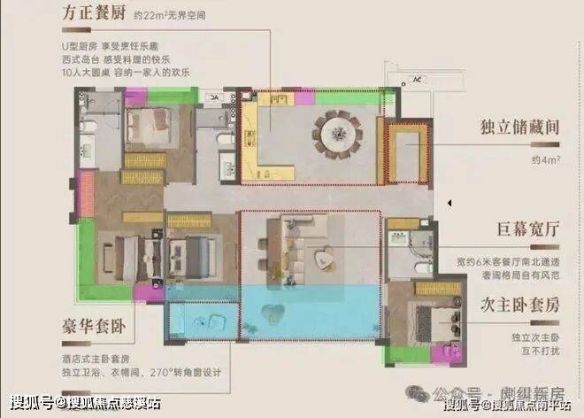 127平:4房2厅2卫,占比22.6%,116平的升级版,客餐厅面宽加大,主卧出现了目前改善常见的L型窗,进一步拉高了得房率。