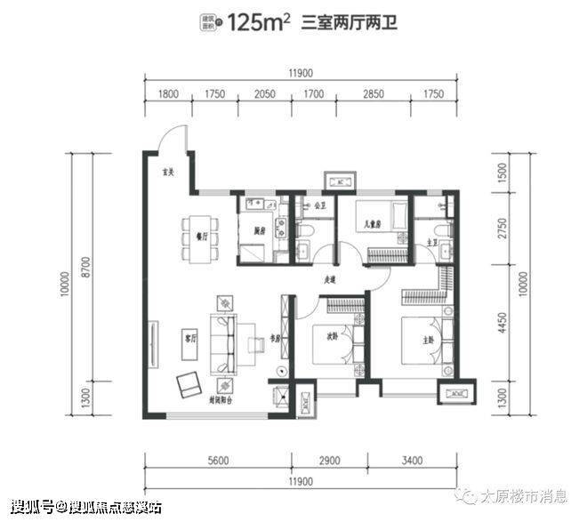 3+1南向布局,约5.6米客厅开间,营造阔绰居家空间。