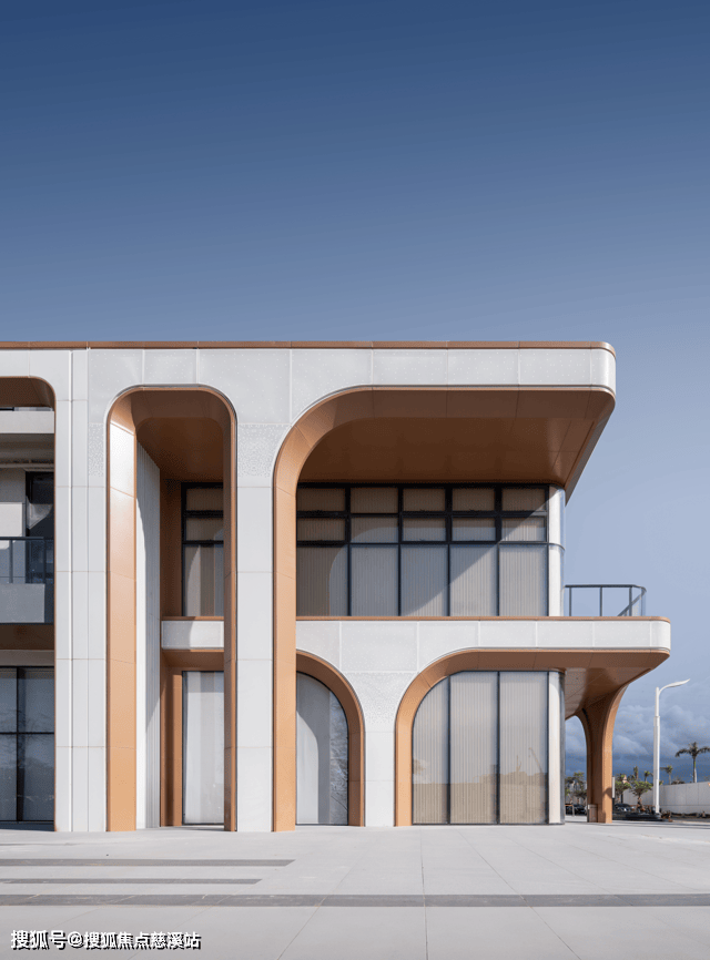 商业部分立面设计在灰白色主色调中融入香槟金元素,通过金属线条与玻璃幕墙的虚实对比,体现精工质感的同时,又营造出精致奢华的商业氛围。骑楼式檐廊延伸出流畅的曲线,搭配暖色灯光与艺术装置,既延续了传统街区的烟火气,又赋予空间现代时尚的都市感。
