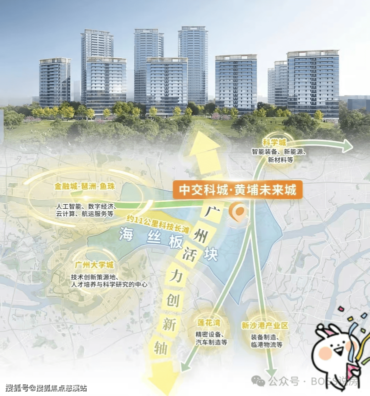 中交科城·黄埔未来城处于海丝城创新走廊的核芯位置,坐落于将军山数创园内,目前将军山数创园(一期)项目,已被列入了2025年广州重点项目,决定了项目不单纯依靠“外溢买家”输血,而是以产城融合的形式出现。