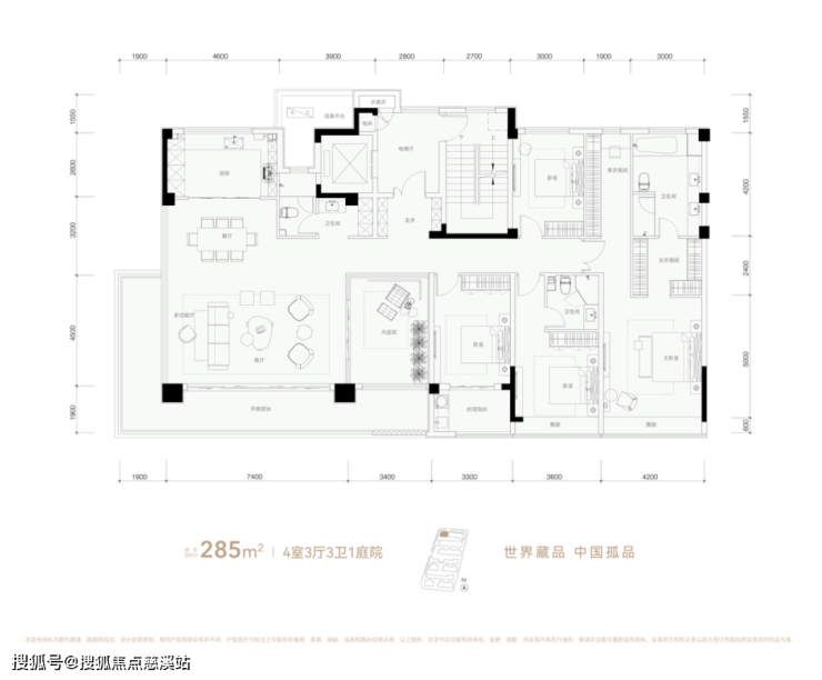 以285㎡户型为例,约7.4米超大面宽客厅,搭配全房23.8米济南第一面宽,重新定义居家格局与视野。约100㎡的景观会客厅与19.1米拐角阳台相连,形成270°环景视野,让山景入画,日常成诗。匠心独创的约15㎡内庭院,整体降板18公分,可随心打造为茶室、园林或家庭氧吧,实现真正的引景入室。南北双套房设计,特别是约50㎡南北通透的主卧,营造出“会呼吸”的私密领域,让光、风、景在此自由流动,成就一方超越物质的精神栖所。