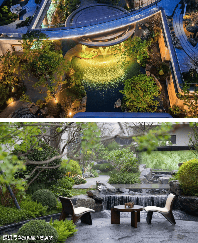 以湖湘“山水洲城”为灵感,打造长沙首个“垂直山水庭院”。超4800㎡园林中,下沉庭院面积逾2000㎡,拥有百米超长景观视野,形成“上可观瀑、中可漫步、下可栖居”的三维游历体验。中央设置由16片花瓣组成的圆形剧场,伴以3D流瀑水景,构建“一轴C环八景”的景观体系,融合四大主题园区与全龄功能场景,实现自然与生活的无界交融。