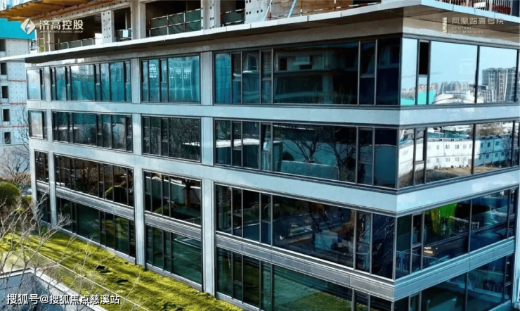 外立面:石材+铝板+玻璃幕墙组合,窗墙比70%,LOW-E三玻两腔玻璃(隔音降噪)。