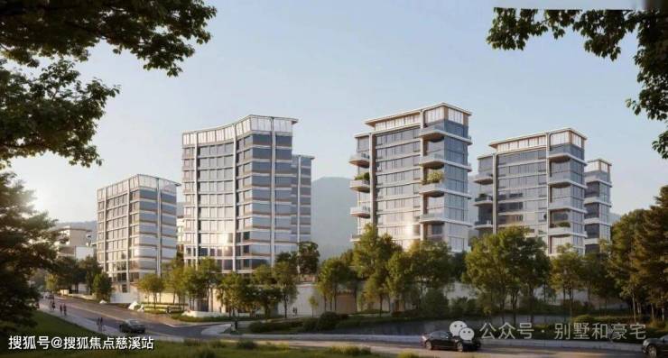 以《溪山行旅图》为设计取意原点,依托南北 5.5 米、东西 10.5 米高差地势,采用三重台地设计,实现户户观山、窗窗揽绿的景观优势。