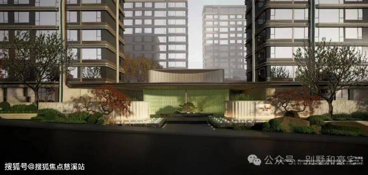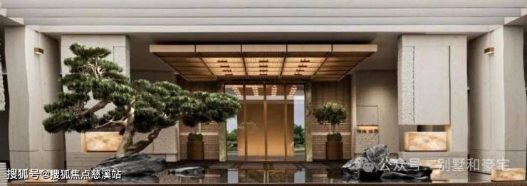 山门:承袭东方礼序与山水诗意,以质感材料打造藏“奢”于“隐”的山门,将《千里江山图》意境融入山门,兼具仪式感与静谧感,让业主归家即见青山,实现从城市到山居的心境转换。