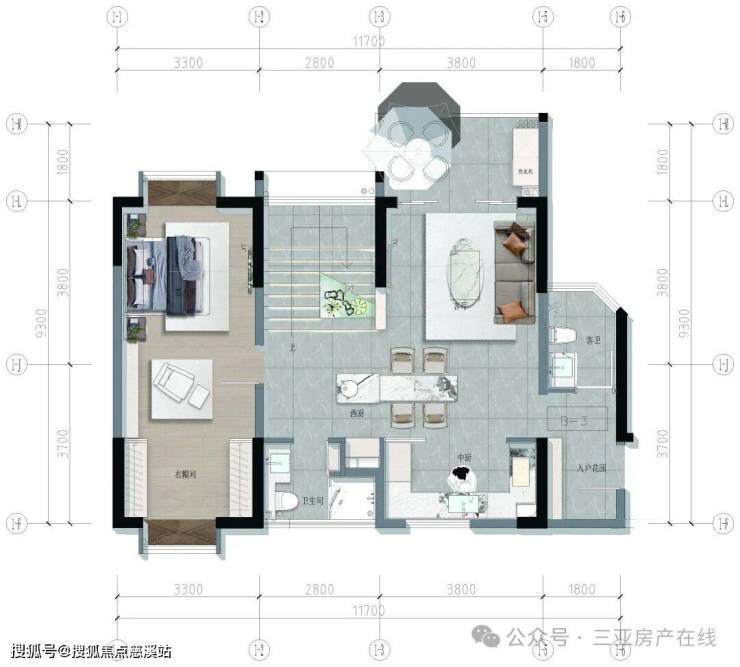 【B3 奢阔大平层 建面约89㎡ 三室两厅两卫】