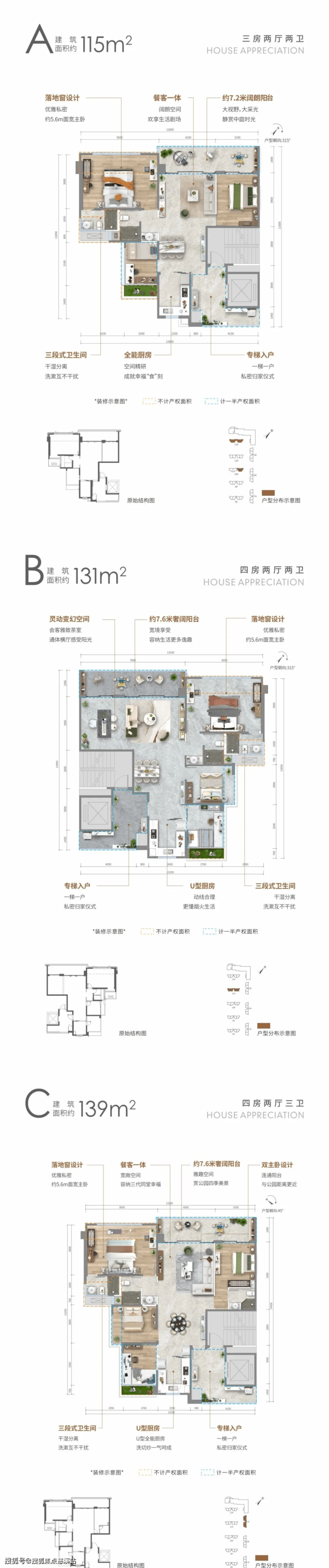 建筑面积约115-139㎡纯板住宅