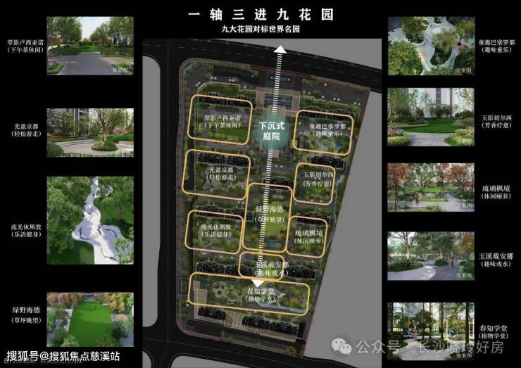 对标世界九大经典花园,通过“一轴多苑”景观格局,形成多维主题的全龄友好空间,营造移步景异、趣意盎然、游园入胜的诗意归家。