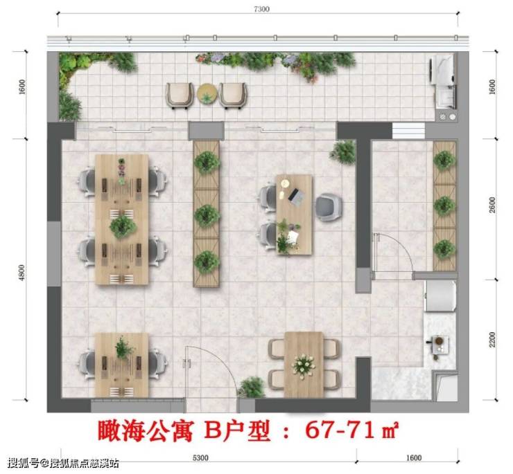 总楼栋规划:2 栋平层海景公寓、2 栋 LOFT、1 栋总部写字楼、1 座 7.8 万方购物中心