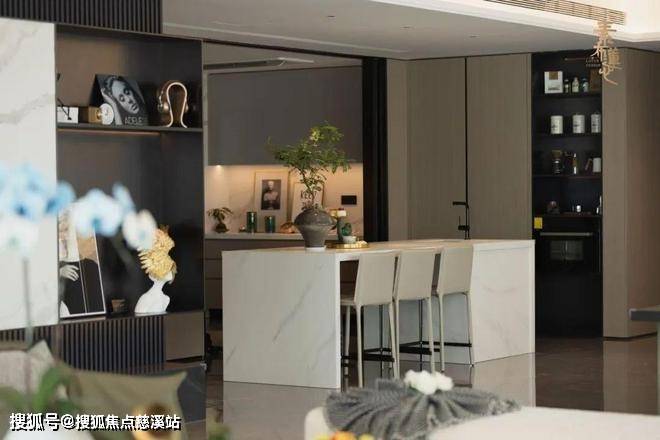 西厨岛台与雅致圆桌餐厅围合