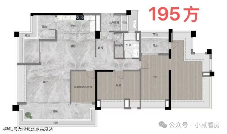 高区为25-37层,两梯三户,有建面约135、160、195平三种户型。