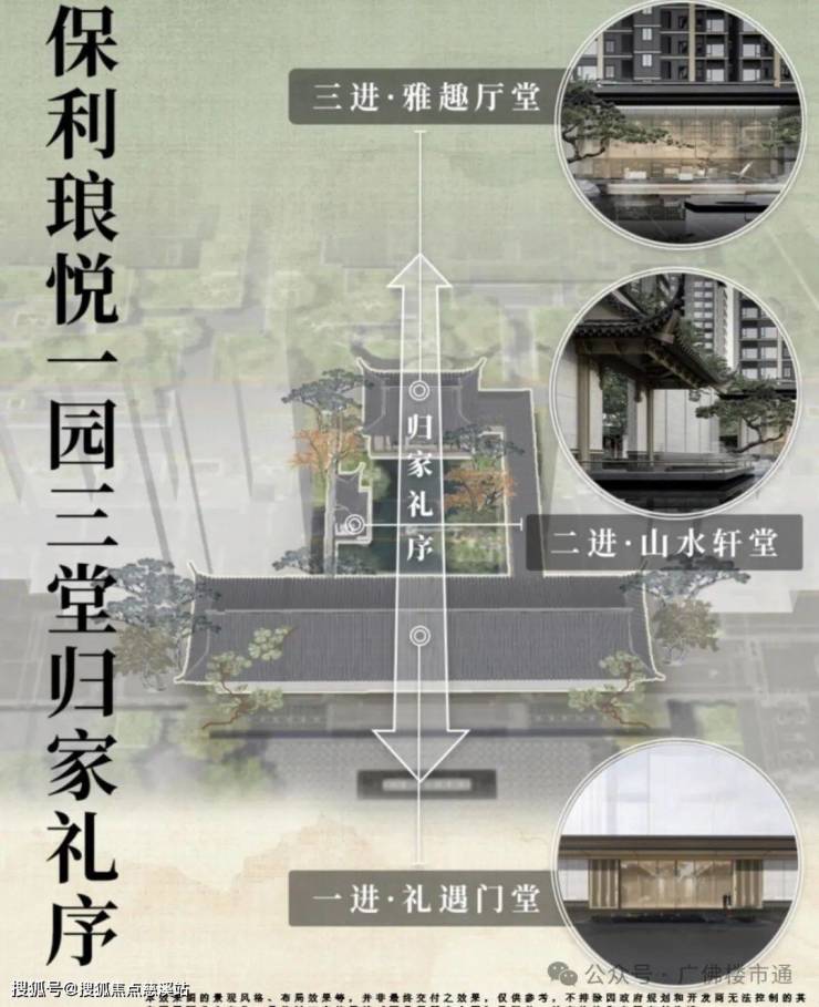 ✅秉承宋式设计美学,匠著“可行、可望、可游、可居”的东方雅素意境。园林设计围绕宋式礼制,一园三堂的主题,打造花都首个宋式园林归家动线。
