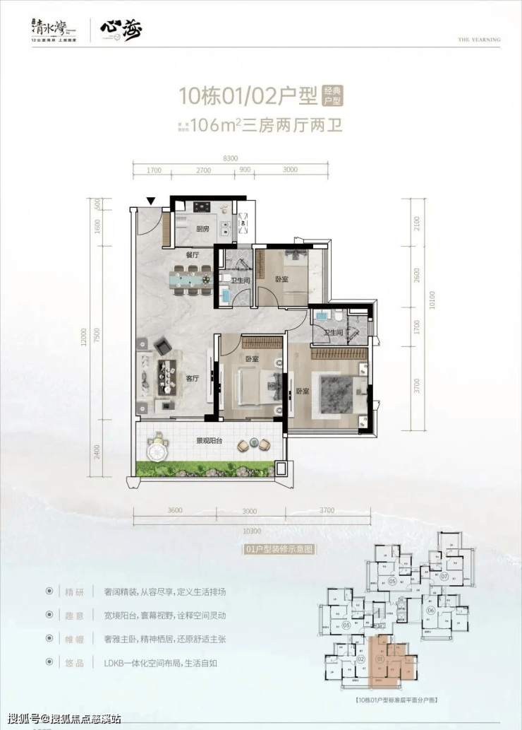 建筑类型与户数:项目规划有别墅和洋房,建筑总高在 12-15 层之间,总户数 968 户,既有小高层的海景视野,又有别墅和洋房的低密舒适。