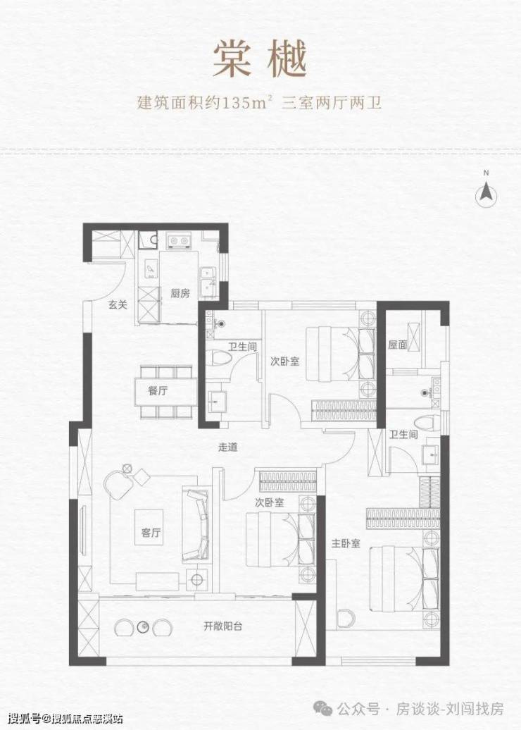 135㎡改善四房(IMAX 级观景阳台),得房率高,空间布局兼顾功能性与舒适性。