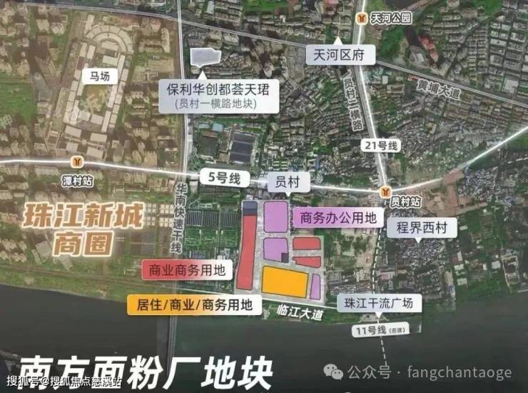 尤为值得一提的是,这是天河比较难得的靠近地铁站的盘,地块东北侧距离地铁5号线与11号线交汇的员村站仅150m,5号线+11号线可以连通广州最核心的几个商务圈---珠城、琶洲、天河北、白鹅潭等等,通达性很强。