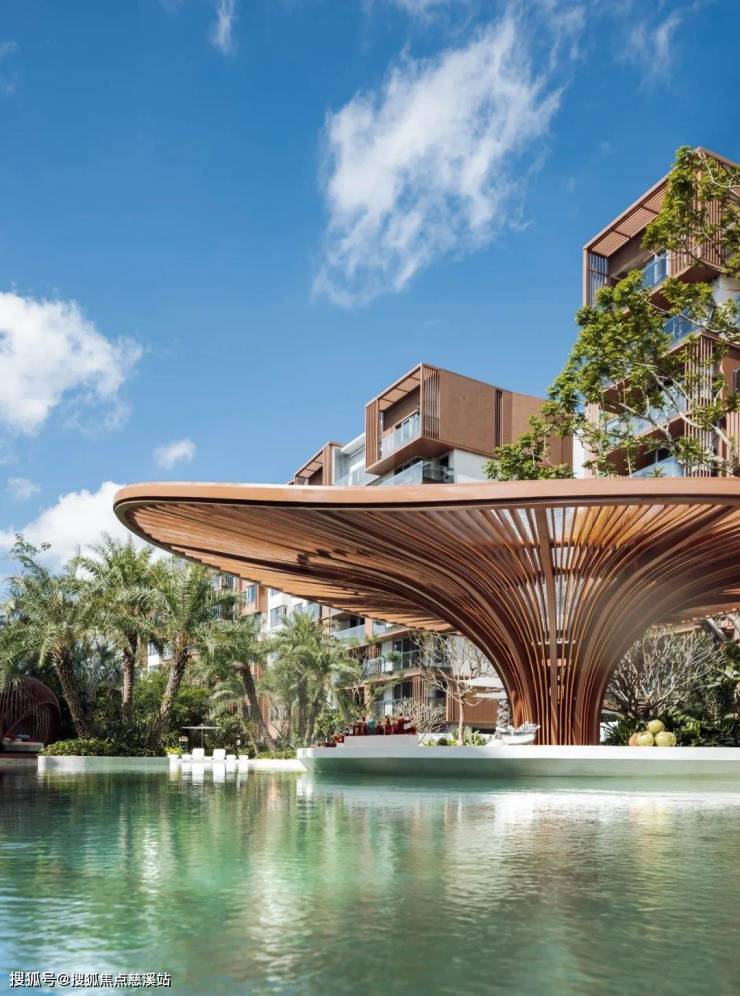 景观以强烈的地域符号,抽离演绎了不同空间体验感受,以流动的设计手法展现了热带花园的自然感,以整体概念“漂浮的绿洲”引水入城,营造热带花园社区。