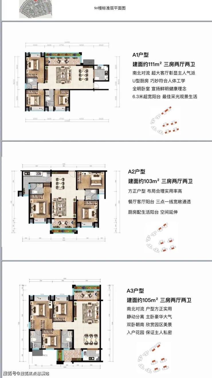 本期投资产品为两梯六户的布局,总高22层,主力户型为103-111㎡大三房,大飘窗、大阳台设计,拥揽阳光、花园。
